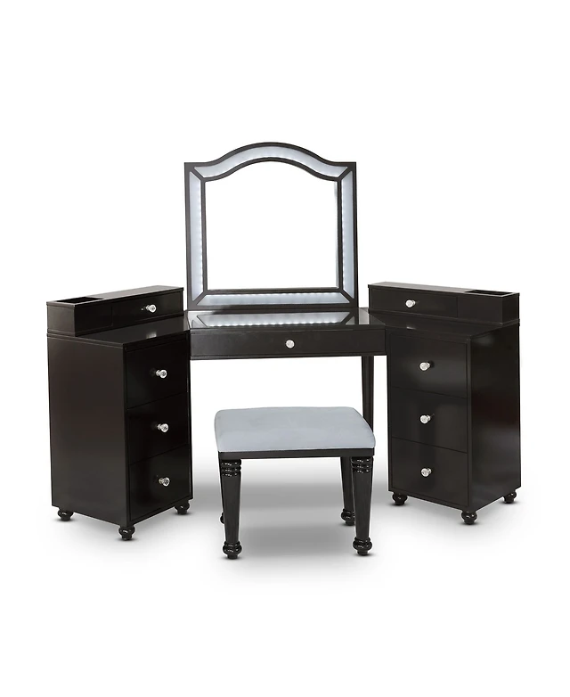 Streamdale Furniture Moniys Wood Moniya Makeup Vanity Table and Stool Set