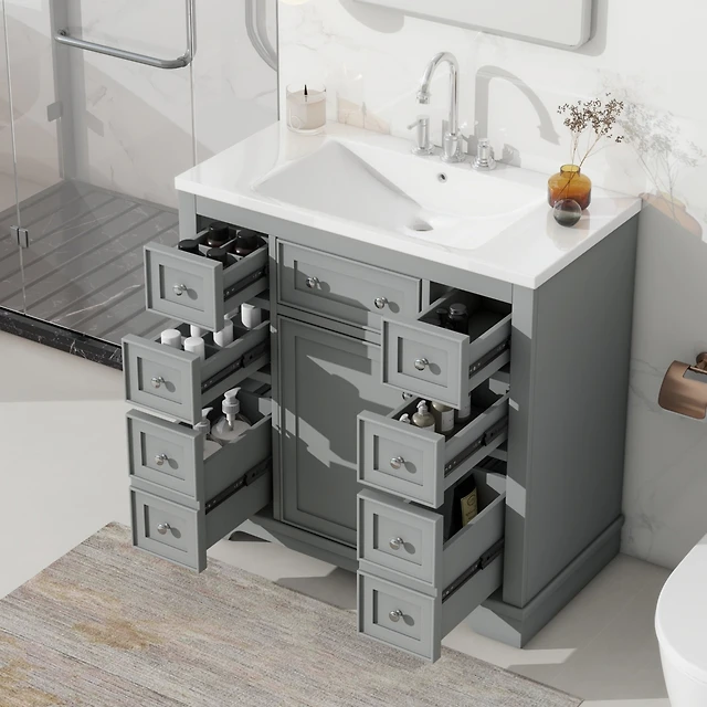 Streamdale 36" Bathroom Vanity with Sink Combo, One Cabinet and Six Drawers, Solid Wood and Mdf Board, Grey