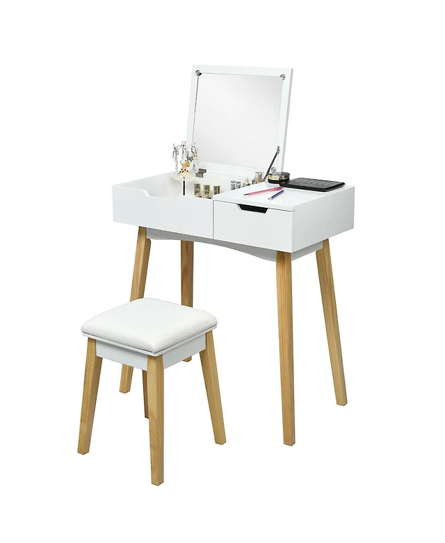 Sugift Wooden Vanity Table with Flip Top Mirror and Cushioned Stool
