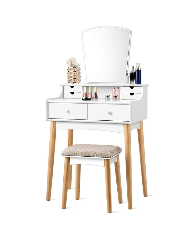Gouun Kids Wooden Makeup Dressing Table and Chair Set with Mirror and Drawer