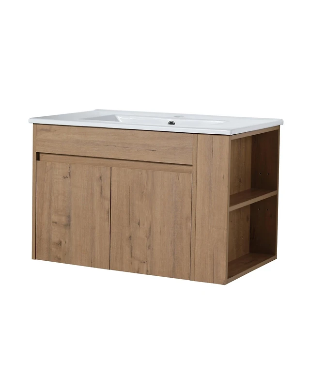 Sillysis 30" Wall Mounted Bathroom Vanity with Sink, Modern Mdf Cabinet, 2 Drawers and Open Shelves for Small Spaces