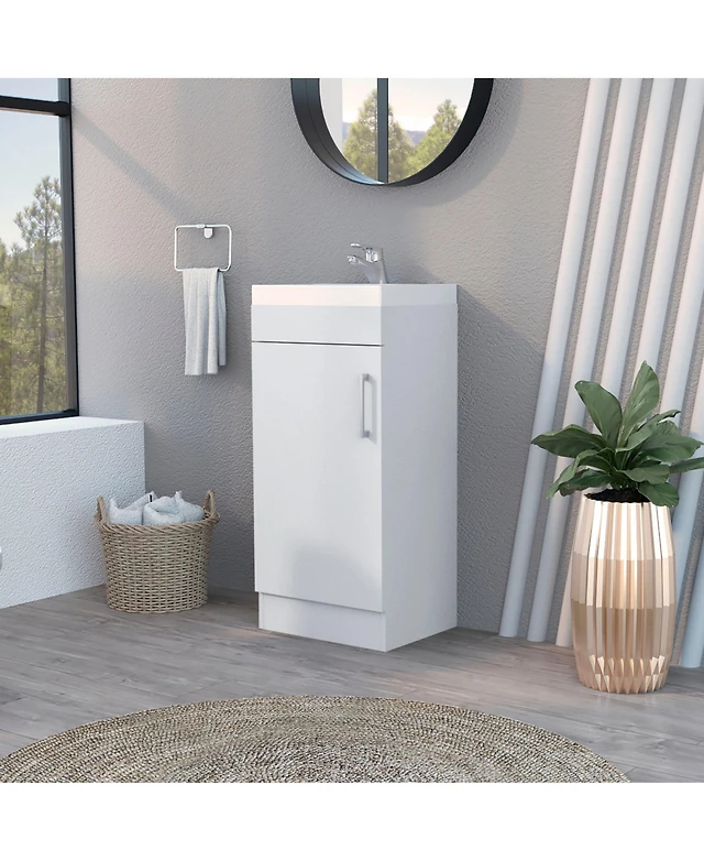 Fm Furniture White Bathroom Floating Vanity with Sink, 1 Door, White