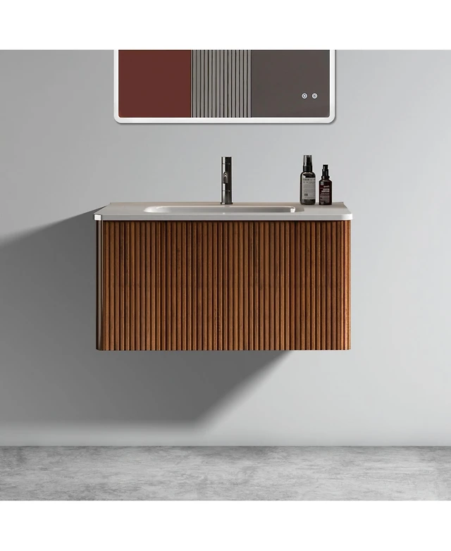 Lovmor Floating Wall Mounted Bathroom Vanity with Ceramic Sink SoftClose Cabinet Door For Small Bathroom