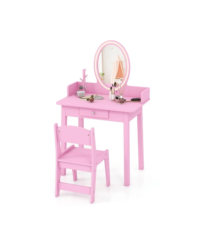 gaomon Kids Vanity Table, Girls Vanity Withtouch Light Detachable Tri-Folding Mirror