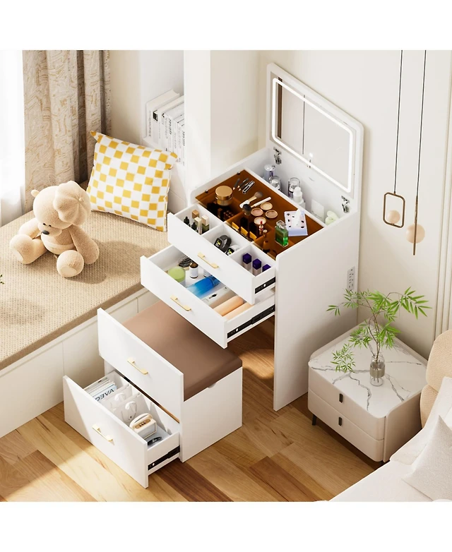 6 Drawers, 2 Shelves, 3 Light Bulbs Mirror Cabinet Dressing Table Set Elegant Vanity with Ample Storage and Led Lighting