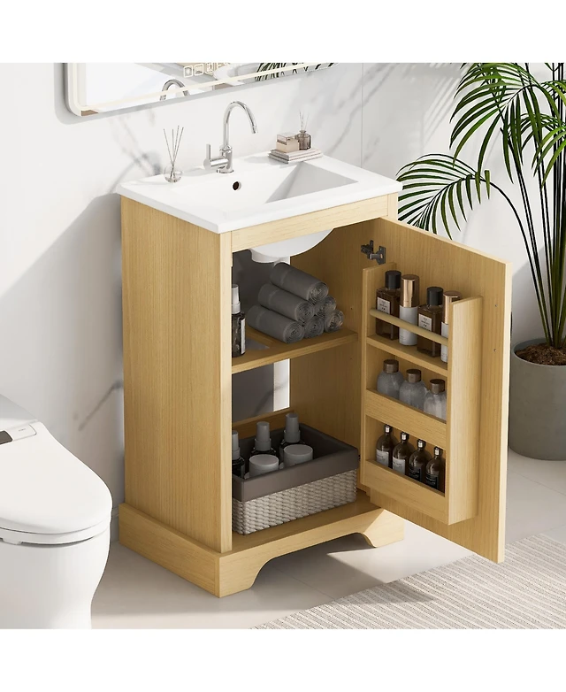 Casainc 24" Bathroom Vanity with Sink, Cabinet with Drawer and Open Shelf, Solid Wood Frame