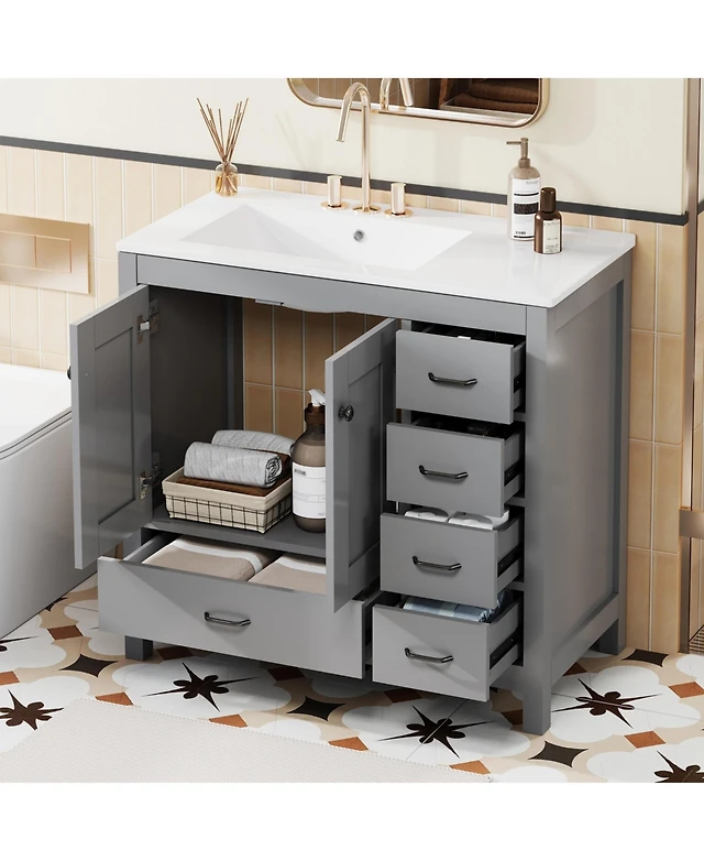 Lovmor 36inch Bathroom Vanity with Ceramic Sink Standard and Double Layer Drawers Soft Close Doors for Small and Medium Bathrooms