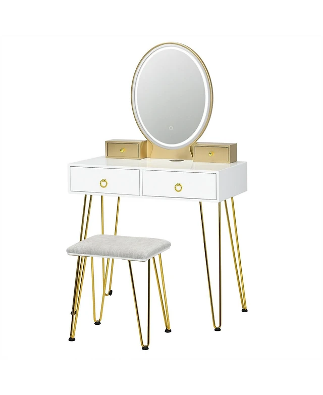 Vanity Desk Set with Led Lighted Mirror & Power Outlet