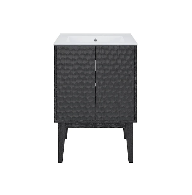 Annecy 24 in. Phantom Black Bathroom Vanity With White, 3-Hole Ceramic Sink Top