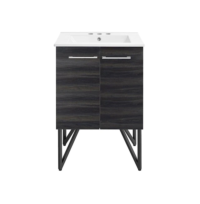 Swiss Madison Marseille 24 in. Gray Oak Bathroom Vanity With Black, 3-Hole Ceramic Sink Top
