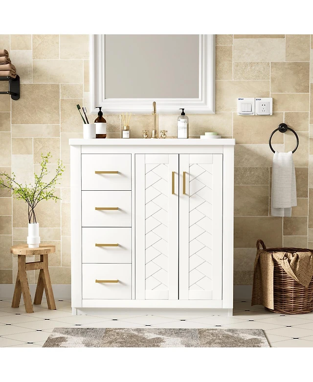 Streamdale 36 Inch Bathroom Vanity Plywood With 2 Drawers