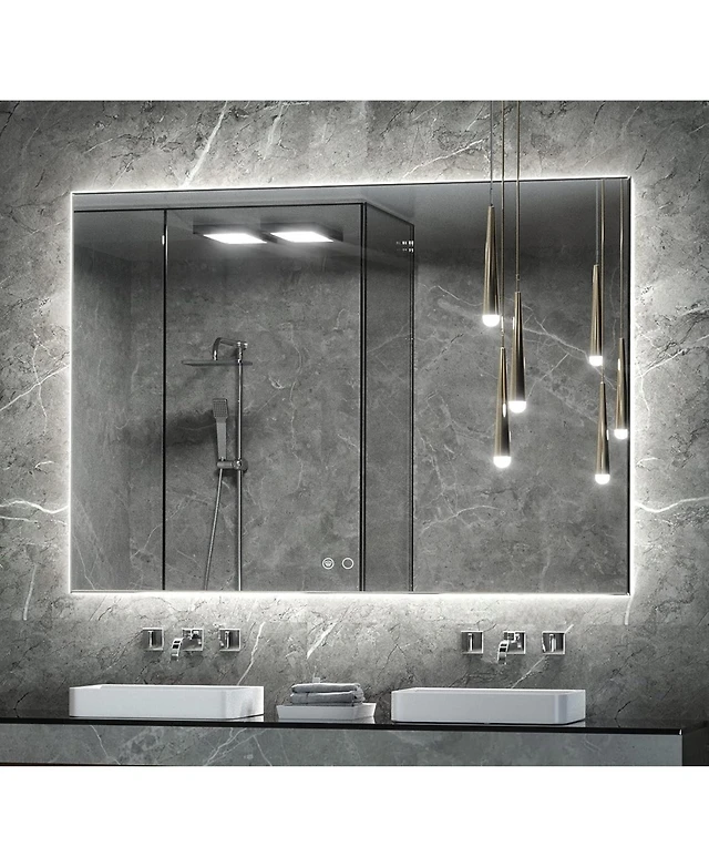 Luvodi 47 x 23 In Large Bluetooth Led Bathroom Mirror Smart Wall Vanity Mirror Anti-Fog