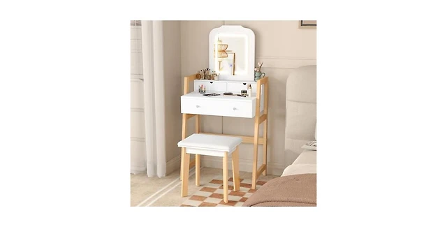 Costway Vanity Table Set Makeup Dressing Kids Stool Mirror