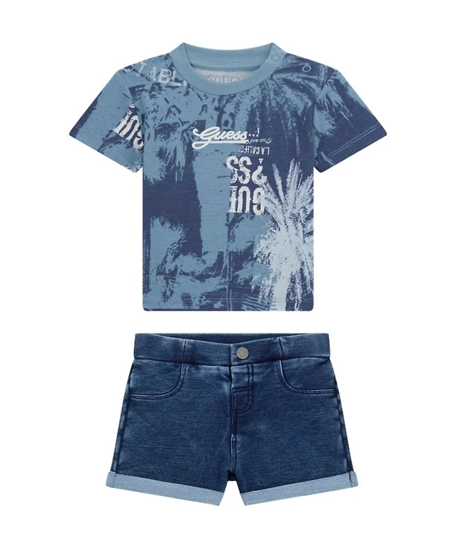 Guess Baby Boy 2-Piece All-Over Print Short Sleeve T-Shirt and Knit Denim