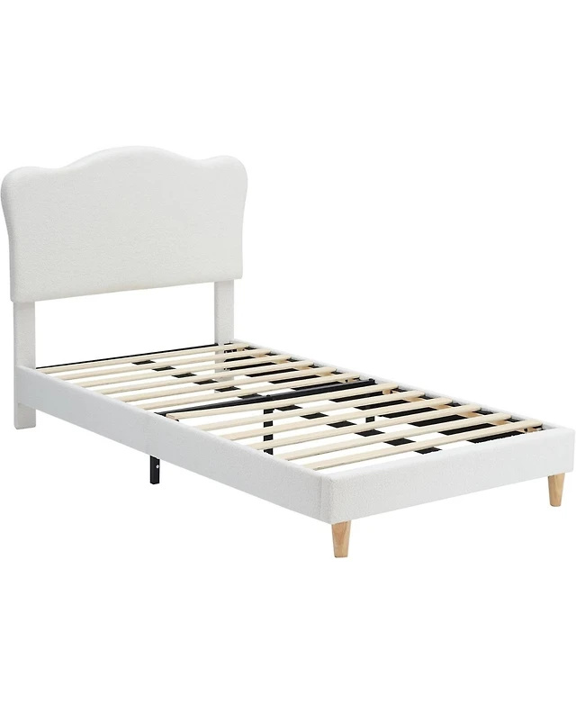 gaomon Twin Size Velvet Upholstered Bed Frame for Kids with Adjustable Scallop Headboard Chic Princess Design Platform Bed Frame