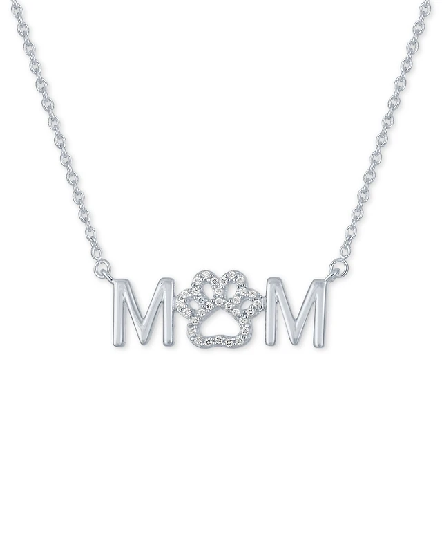 Diamond "Mom" Paw 18" Pendant Necklace (1/10 ct. t.w.) in Sterling Silver