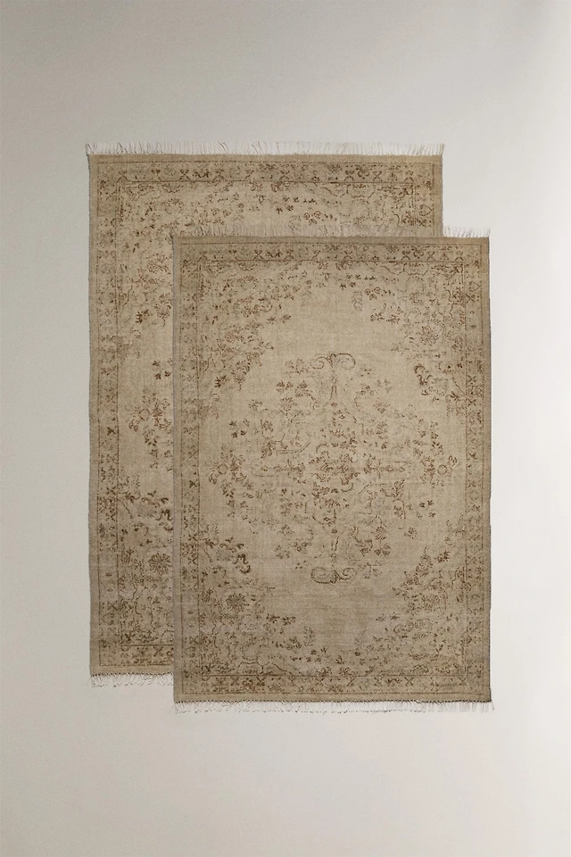 JUTE AND COTTON AREA RUG WITH FRINGING