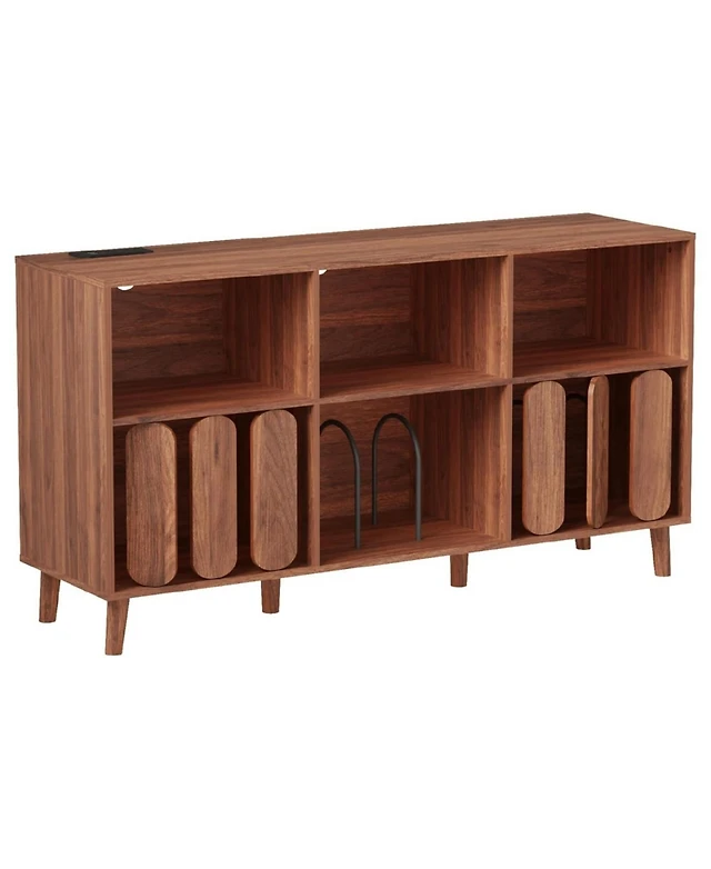 Gouun Record Player Stand with Power Outlet and Vinyl Storage Cubby, 31.5 x 16 x 31 in