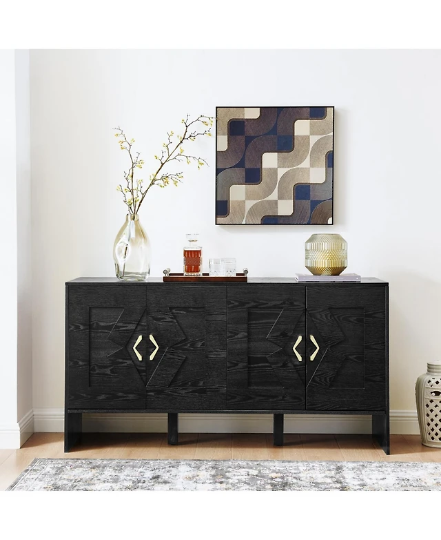 Streamdale Furniture 31.5" Vintage Carved Buffet Cabinet, 2 Doors, Adjustable Shelves