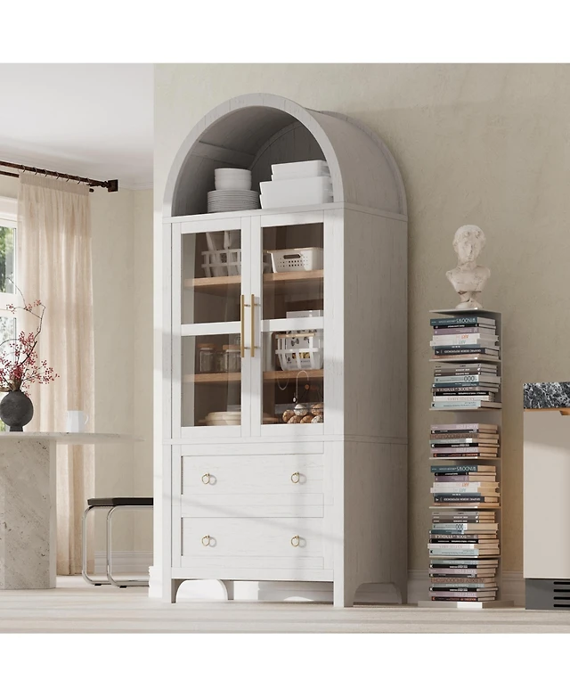 Streamdale Kitchen Pantry Cabinet with Glass Doors & Drawers - Natural