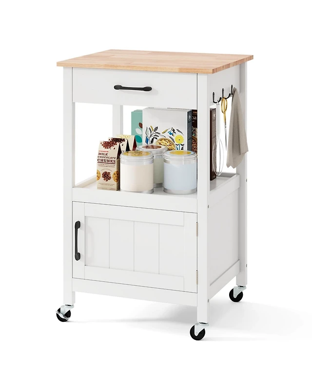 Streamdale White Kitchen Cart with Drop-Leaf Countertop
