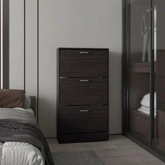 Shoe Cabinet with 4 flip-Out Drawers, Shoe Rack Organizer with Wooden Handles, Freestanding Shoe Cabinet with Anti-Tipping Device (Natural-4 Drawers