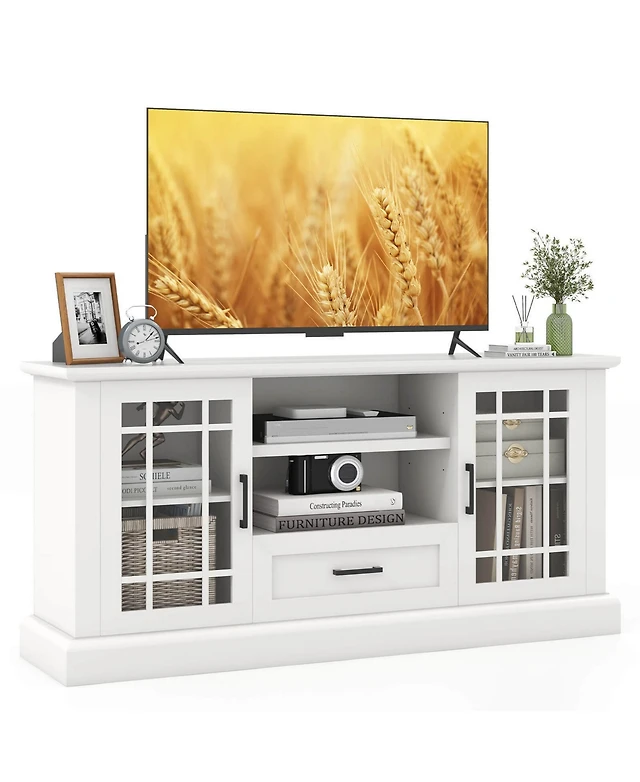Gymax Farmhouse Tv Stand for TVs up to 70'' Media Center w/Glass Doors Cubbies & Drawer