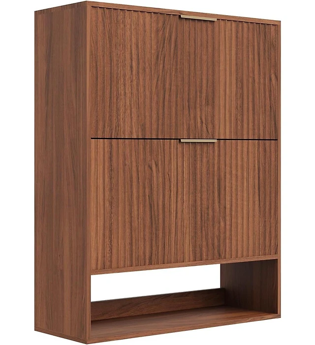 gaomon Modern Shoe Storage Cabinet with 4 Flip Drawers, Space-Saving Shoe Organizer with Wooden Handles for Entryway, Hallway or Bedroom