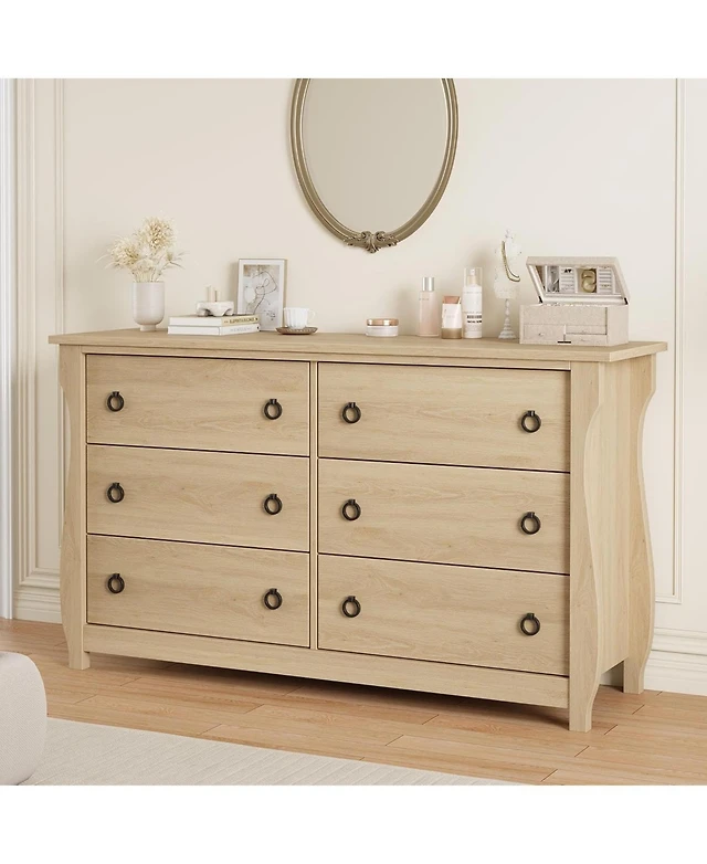gaomon 6 Drawer Dresser for Bedroom, Modern Double Dresser Organizer with 6 Drawers Large Storage, Wooden Chest of Drawers for Living Room