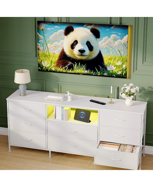 gaomon 9 Drawer Wooden Dressers for Bedroom with Led Lights & Charging Station, Wood Chest of Drawers App Control, Modern Large Storage Cabinet
