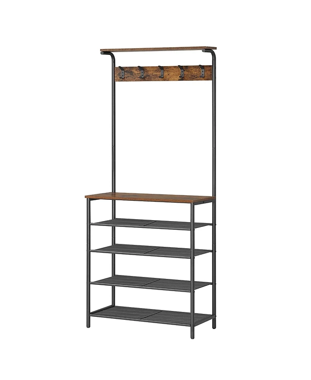 Yigii Freestanding Hall Tree Coat Rack 3 Shelves 12 Hooks Industrial Clothes Stand Organizer
