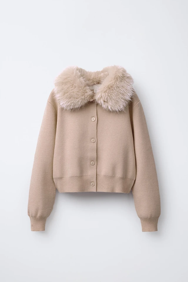 FAUX FUR TRIM COMBINATION CARDIGAN