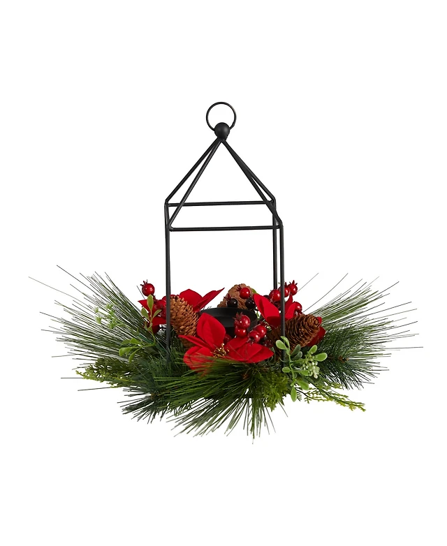 10" Hand-Painted Poinsettias and Flameless Glass Christmas Candle Holder