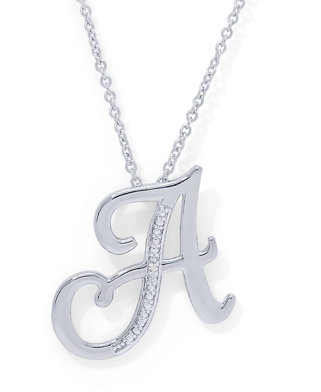 Diamond Accent Initial Pendant Necklace 18" in Silver Plate
