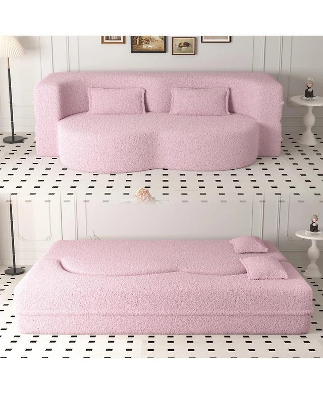 Streamdale Furniture Streamdale Pink Teddy Fabric Convertible Floor Sofa Bed
