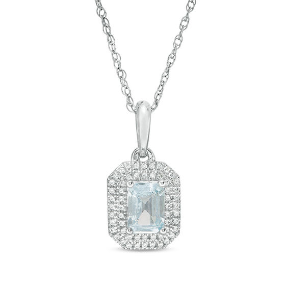 Emerald-Cut Aquamarine and 1/5 CT. T.w. Diamond Double Octagon Frame Drop Pendant in 10K White Gold