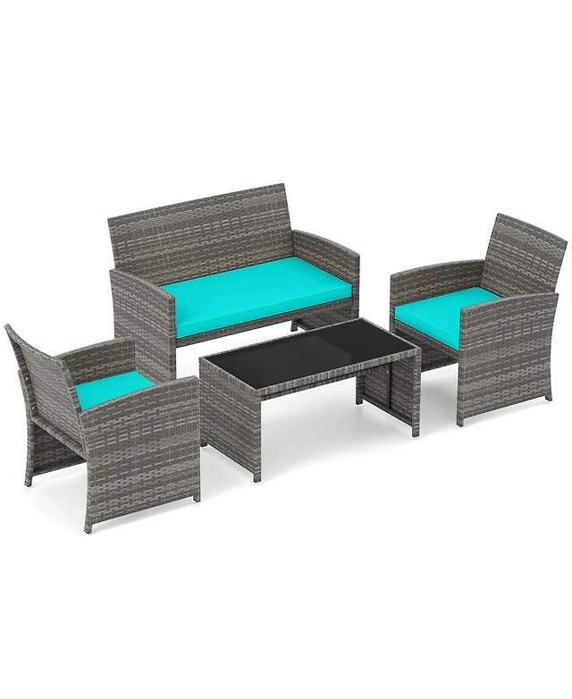 4PCS Rattan Patio Furniture Set Sofa Chair Coffee Table w/Cushion