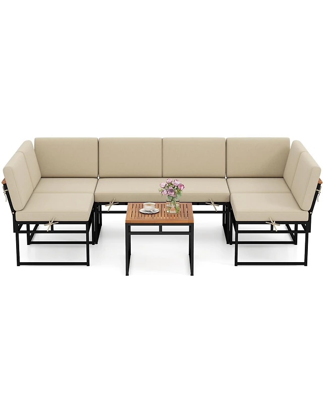 Gymax 5 Piece Rattan Furniture Set w/ Wicker Woven Sofa Set & Solid Acacia Wood Frame