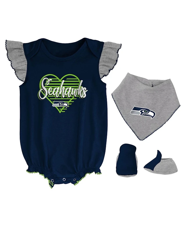 Girls Newborn and Infant College Navy, Heathered Gray Seattle Seahawks All The Love Bodysuit Bib and Booties Set
