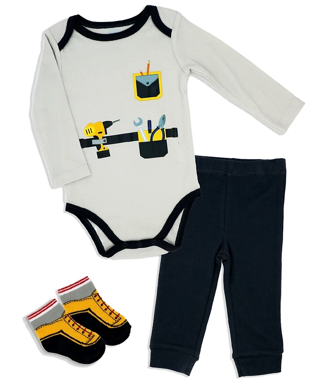 Hudson Baby Boys 3Pc Long Sleeve Bodysuit and Pant
