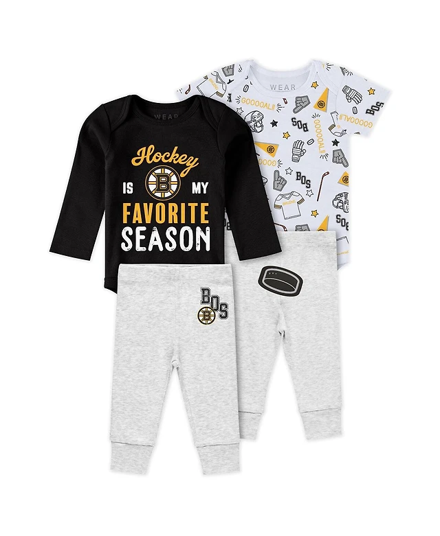 Wear by Erin Andrews Baby Boys and Girls 3-Piece Boston Bruins Turn Me Around Bodysuits Pants Set