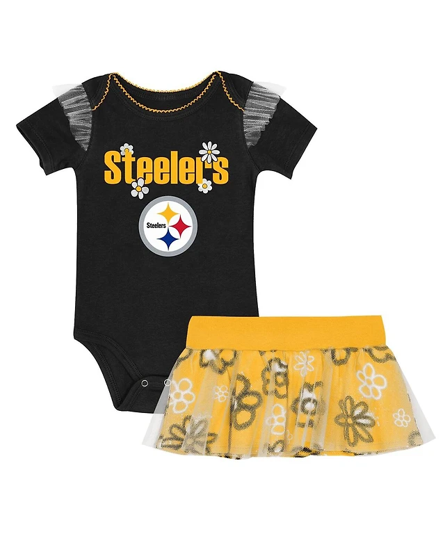 Outerstuff Girls Newborn 2-Piece Black Pittsburgh Steelers My Team Rocks Bodysuit and Skirt Set