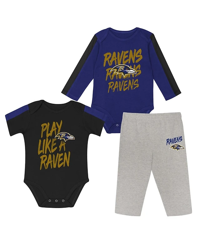 Wear by Erin Andrews Baby Boys and Girls Newborn 3-Piece Baltimore Ravens Turn Me Around Bodysuits Pant Set
