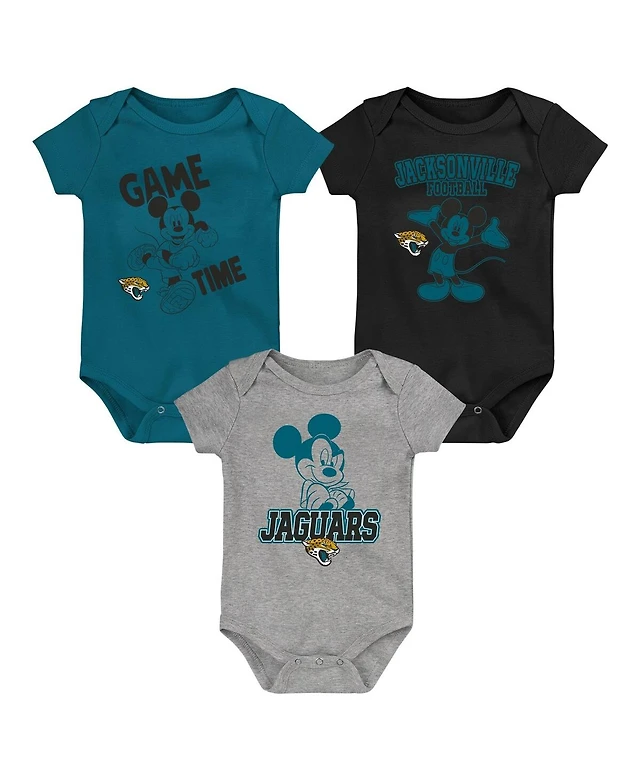 Outerstuff Baby Boys and Girls Teal/Black/Gray Jacksonville Jaguars Three-Piece Disney Game Time Bodysuit Set