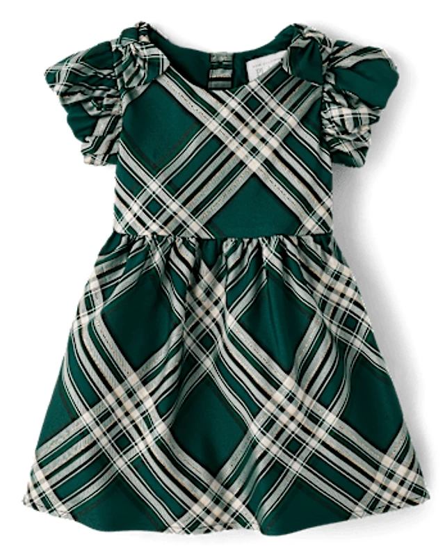 Girls Matching Family Plaid Sequin Fit And Flare Dress