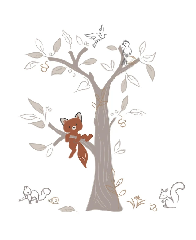 Lambs & Ivy Treetop Fox Beige Tree w/ Woodland Animals Wall Decals/Stickers