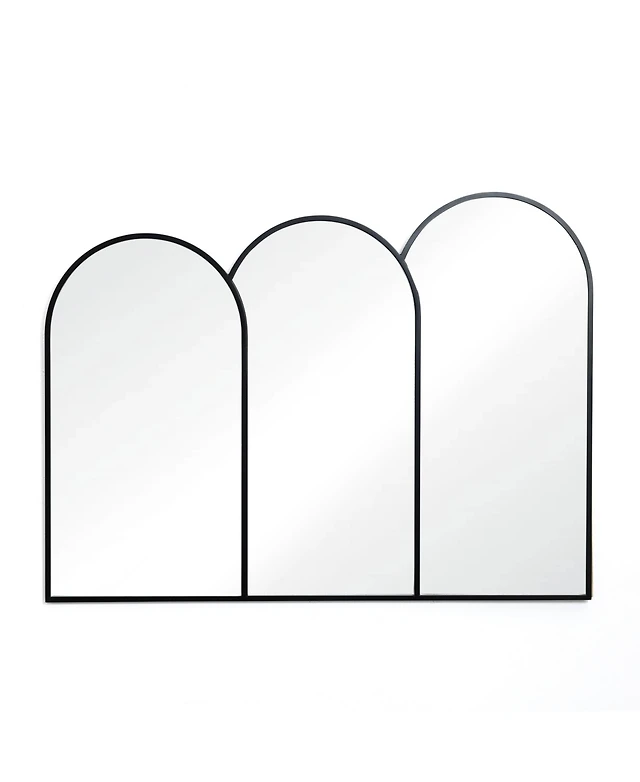 Rosemary Lane 34" Metal Arched Window Pane Inspired Room Wall Mirror with Black Frame