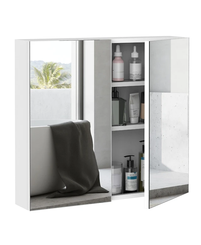 kleankin 2 Door Floating Restroom Bathroom Vanity Mirror W/3-Tier Storage Shelves 24"x22"