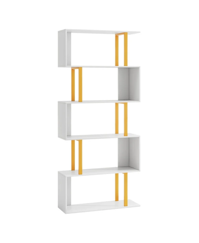 Slickblue 5-Tier/6-Tier Geometric Bookcase with Metal Frame and Anti-tipping Kits-5 Tier
