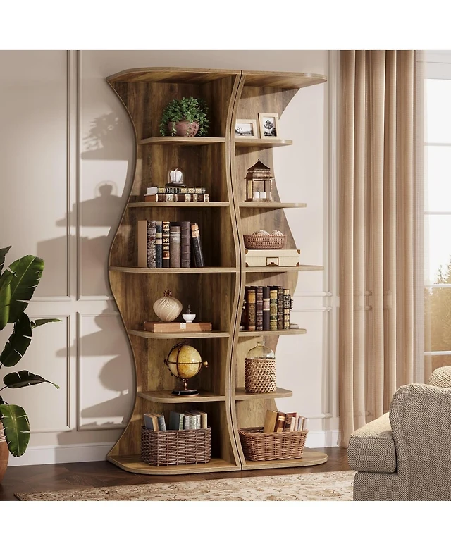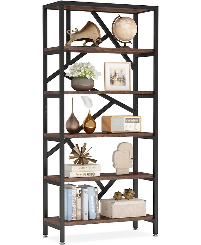 Tribesigns 6-Shelf Industrial Bookshelf, Vintage Etagere Bookcase, 69 Inch Tall Storage Display Staggered Shelves for Home Office